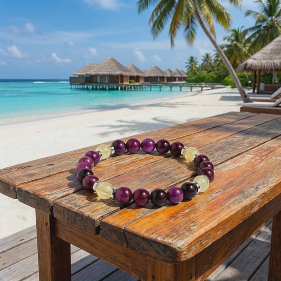 Crafted with vivid Purple Tiger's Eye and radiant Citrine, the 'Focused Power' bracelet serves as a daily reminder to direct your strength, attention, and enthusiasm toward what matters most.